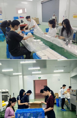 組織需要,就是青年突擊隊集結的號角。面對晶華生物人手緊缺困境,福建輕紡集團本部青年突擊隊聞令而動,火速支援晶華生物。初至晶華生物廠房,青年突擊隊隊員就馬不停蹄加入組裝流水線,學習裝盒、印碼、套膜、塑封等相關知識,活躍在組裝生產各個環節。在學習與實操的有機結合中,青年突擊隊隊員不斷優化工作方式,提高工作效能,僅花費兩個半小時就超額完成上午既定包裝任務。在支援生產之余,青年突擊隊隊員利用午休時間參觀了晶華生物現代化生產設施,對晶華生物各類產品的生產流程有了更為具象化的認識,也加深了對晶華生物生產經營業務內容的理解。