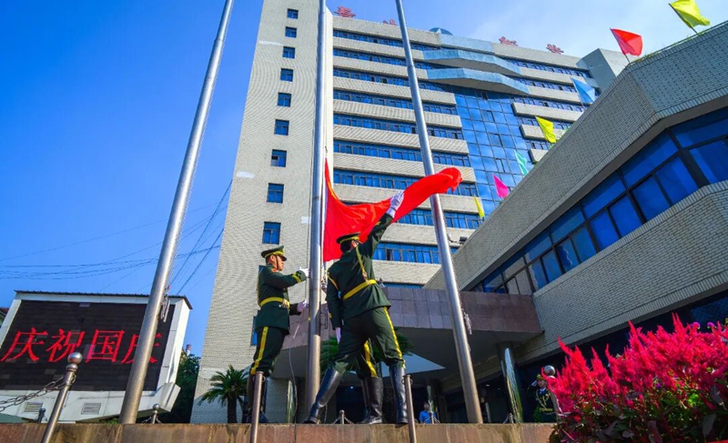 國慶前夕,青山紙業在辦公樓前莊嚴舉行升國旗儀式。一支由公司退役軍人組成的儀仗隊,護衛著鮮艷的五星紅旗,鏗鏘有力地走向升旗臺,充分展現了軍人特有的優良作風和昂揚斗志。伴隨著雄壯激昂的《義勇軍進行曲》,鮮艷的五星紅旗冉冉升起,在蔚藍的天空下迎風飄揚。全體人員神情莊重,面向國旗行注目禮,并高唱國歌,激昂嘹亮的歌聲,表達對祖國母親最深沉的熱愛和最真摯的祝福。