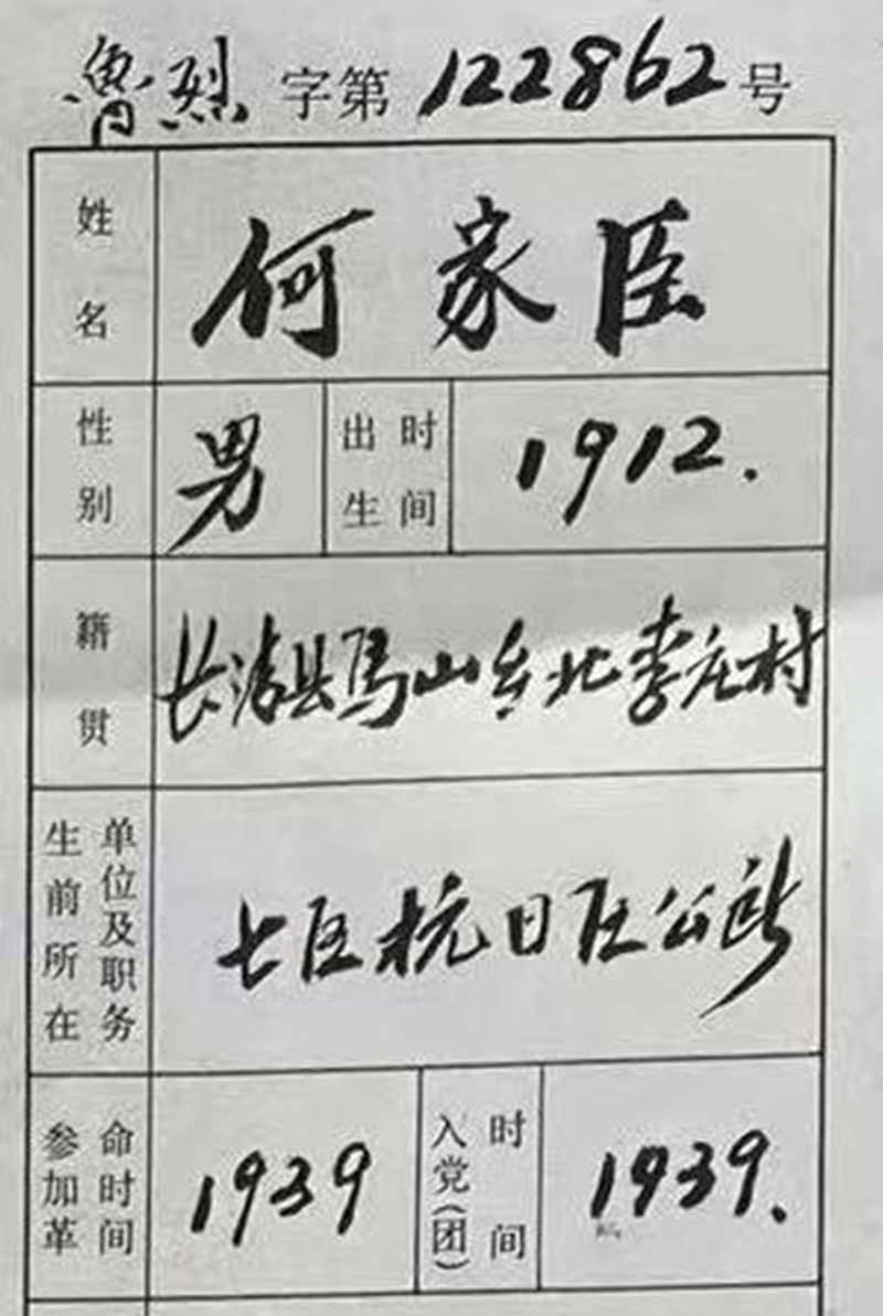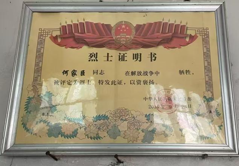 何美龍的曾祖父何家臣,是一名抗戰老兵,1939年加入中國共產黨,曾在抗日戰爭的槍林彈雨中輾轉奮戰,最終在解放戰爭中英勇犧牲,年僅36歲。