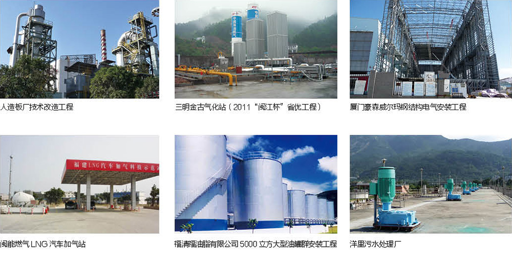 公司能夠承接重型工業(yè)、輕紡工業(yè)、石油化工、工業(yè)鍋爐熱電、電子信息工業(yè)、醫(yī)療制藥業(yè)、民用工程、消防工程、市政工程等大中型工程。承建有亞洲最大氯酸鹽產(chǎn)量,氯酸鉀規(guī)模世界第一的福州一化集團(tuán)技改工程;亞洲第一的青山紙業(yè)皮紙脫墨生產(chǎn)線工程;福建省東南電化集團(tuán)15萬(wàn)噸/年產(chǎn)PVC技改工程;福州市中亭街址六萬(wàn)平方暖通工程;馬尾船政海洋工程裝備及特種船舶項(xiàng)目陸域工程第一、二部分投資建設(shè)項(xiàng)目等。